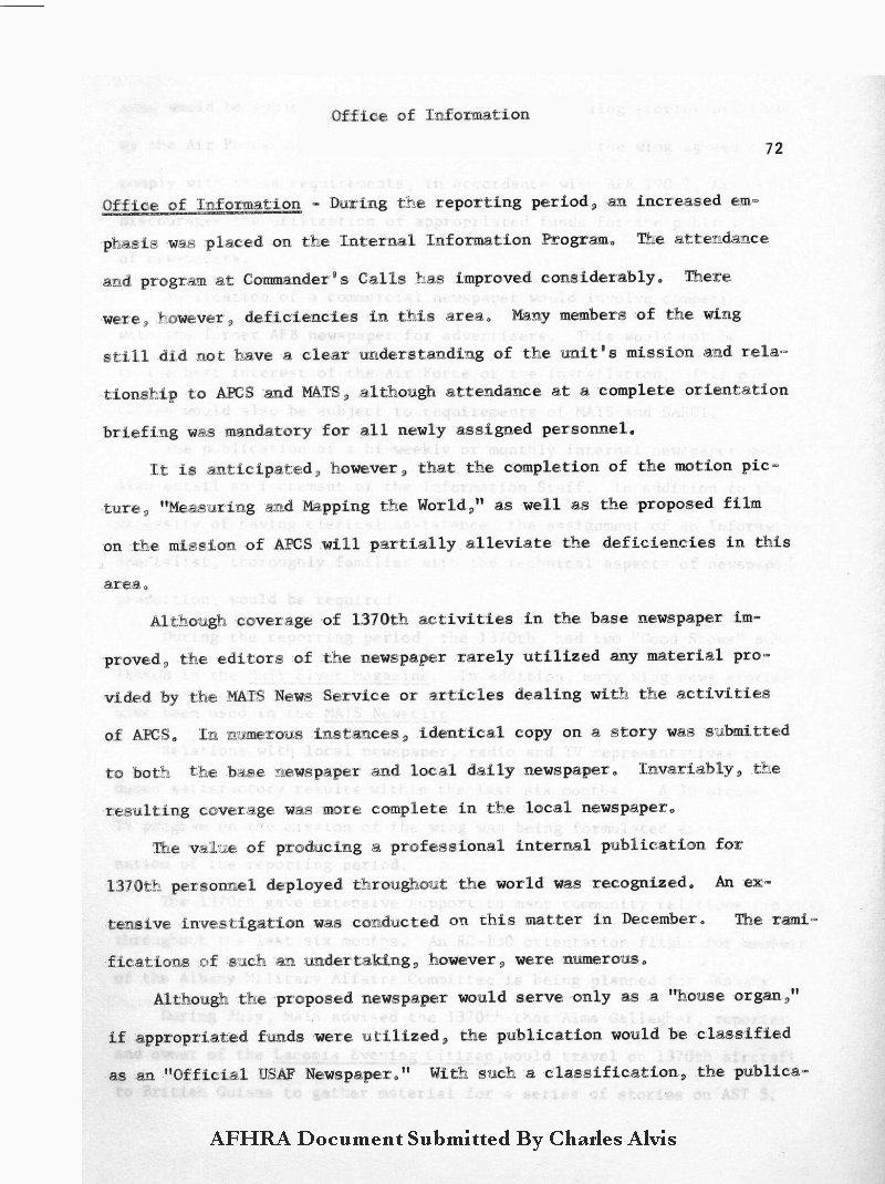 Submitted By Charles Alvis(1374th M & C Squadron, 1370th PMW)