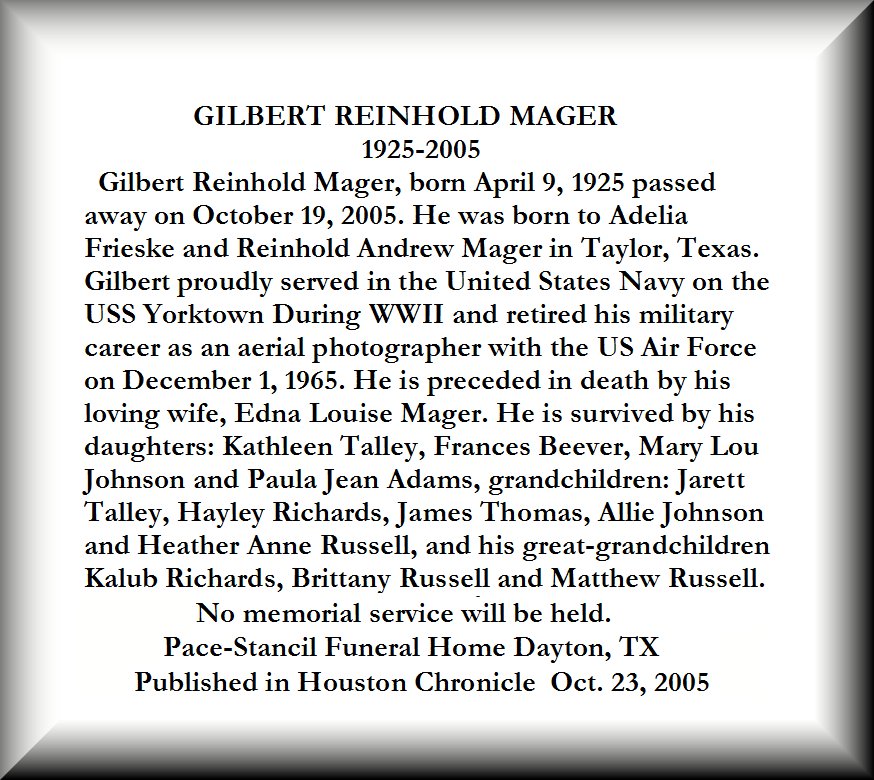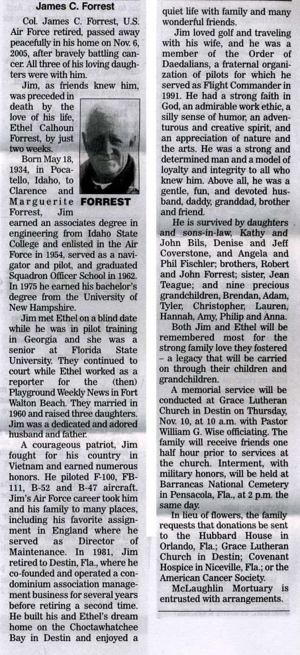My father died 28 September 2005, in Abilene, TX. Survived by: wife, Dorothy L. Jones of 53 years of marriage; oldest son,William L. Jones Jr. ; second son, David Jones; daughter, Linda Jones; daughter, Sandra Ferris . Preceded in death by youngest son, Russell Jones. He was born in 1929 in Amite County, MS. Joined USAF in DEC 1950. MATS, 1953-1965, 1370th PMG and 1370th PMW. AFSC 42173, Aircraft Ground Equipment Repair Technician. Retired OCT 1973.