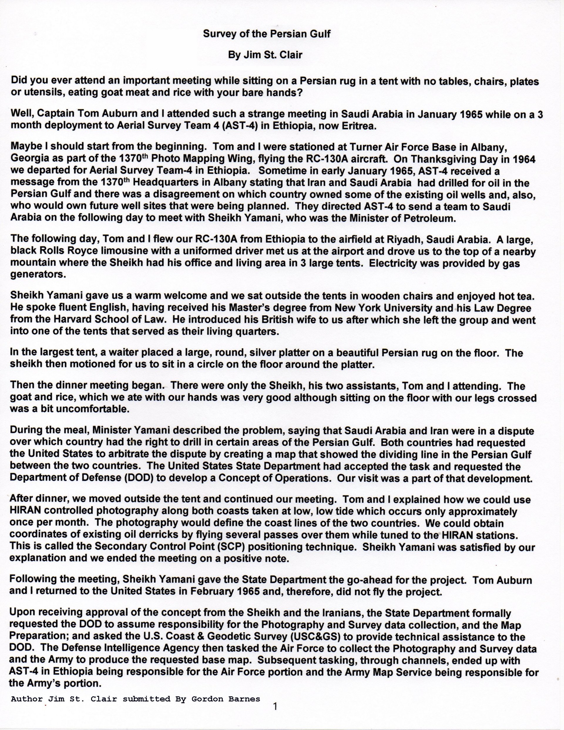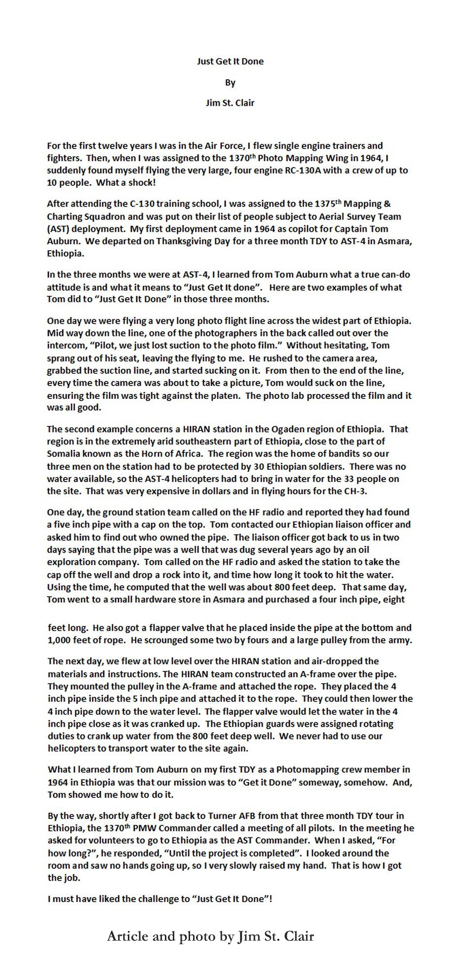 This section was submitted by former AST 4 Commander, Jim St. Clair
